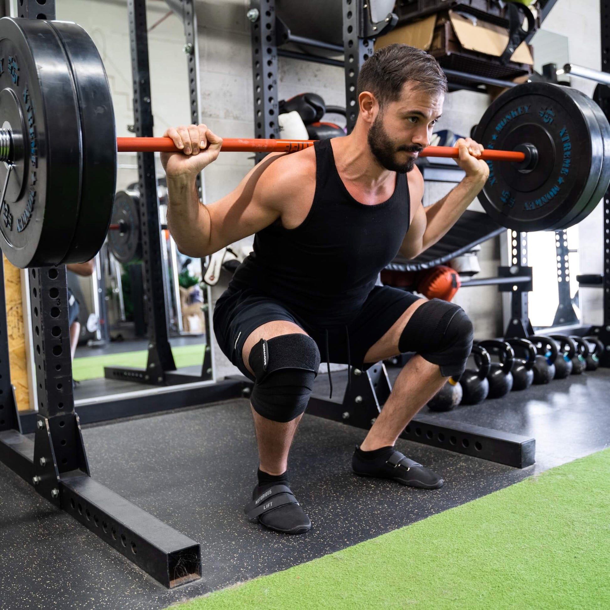 Set a new personal record in your squats with the BODYPROX Knee Wraps. These durable and elastic wraps secure your kneecap in place and store elastic energy within your muscles, allowing for a heavier lift in your squats and lifts.